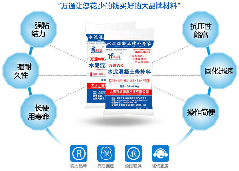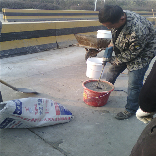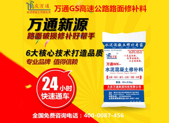 大慶萬通新源科技有限公司獨有的混凝土路面高強速補料,是水泥混凝土路面病害修復的好材料。疲勞、凍融循環(huán)、彎曲壓力、滲水和基層破壞等原因都會引起水泥路面的破損,從而帶來高昂的維護費用。與以往的剛性修補方法不同,混凝土水泥路面維修速補膠提供了一種獨特的柔性修補產(chǎn)品和技術(shù),高柔性、高抗拉性,可跨伸縮縫施工和高抗壓性使得混凝土快補產(chǎn)品為水泥混凝土路面提供了******性的修補。傳統(tǒng)的剛性修補方案,如環(huán)氧砂漿和快干水泥產(chǎn)品,由于其自身的粘結(jié)失效,抗疲勞性低以及與原路面不同的伸縮系數(shù),修補面會在短時間內(nèi)失效或產(chǎn)生新的裂縫,需要反復修補,有效期短且費用高昂。大慶萬通新源科技有限公司的混凝土水泥路面維修速補膠可以隨原路面一起伸縮,移動,從而避免了粘結(jié)失效和產(chǎn)生新裂縫。萬通快補產(chǎn)品優(yōu)異的粘結(jié)性、柔韌性和高防滑性,特別適用于水泥路面的淺層粘合修補,多邊角混凝土板層修補,跨伸縮縫修補以及路面沉陷修補。萬通混凝土病害修補料針對混凝土起皮起沙、斷板裂縫、蜂窩麻面、坑槽露石子、漏筋掉皮、橋梁的掉皮漏筋快速通車使用時間長。應(yīng)用萬通快補產(chǎn)品,施工后一天就可以恢復交通。大慶萬通新源科技有限公司的萬通水泥路面維修速補膠適用于高速公路、機場路面、農(nóng)村村村通路面、廠坪、學校操場、市區(qū)公路、小區(qū)路面、橋梁、水泥路面的修補。使用萬通特快補材料修補路面可以一勞永逸! 水泥地面起砂怎么辦,混凝土修補劑混凝土地面起砂,混凝土地面修補,地面起砂怎么辦,